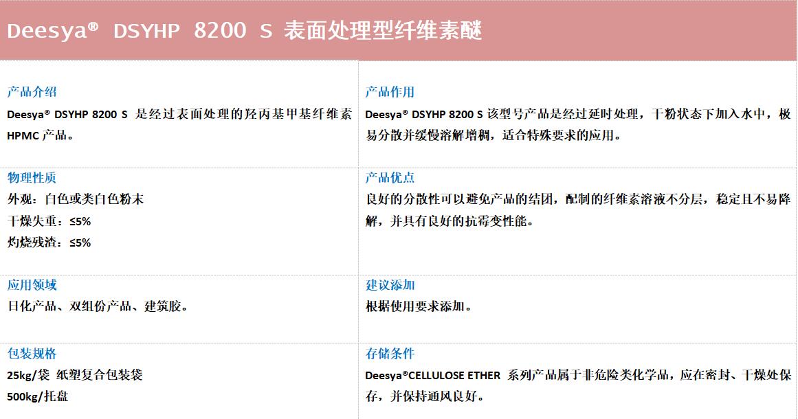 DSYHP 8200 S 表面处理型纤维素醚